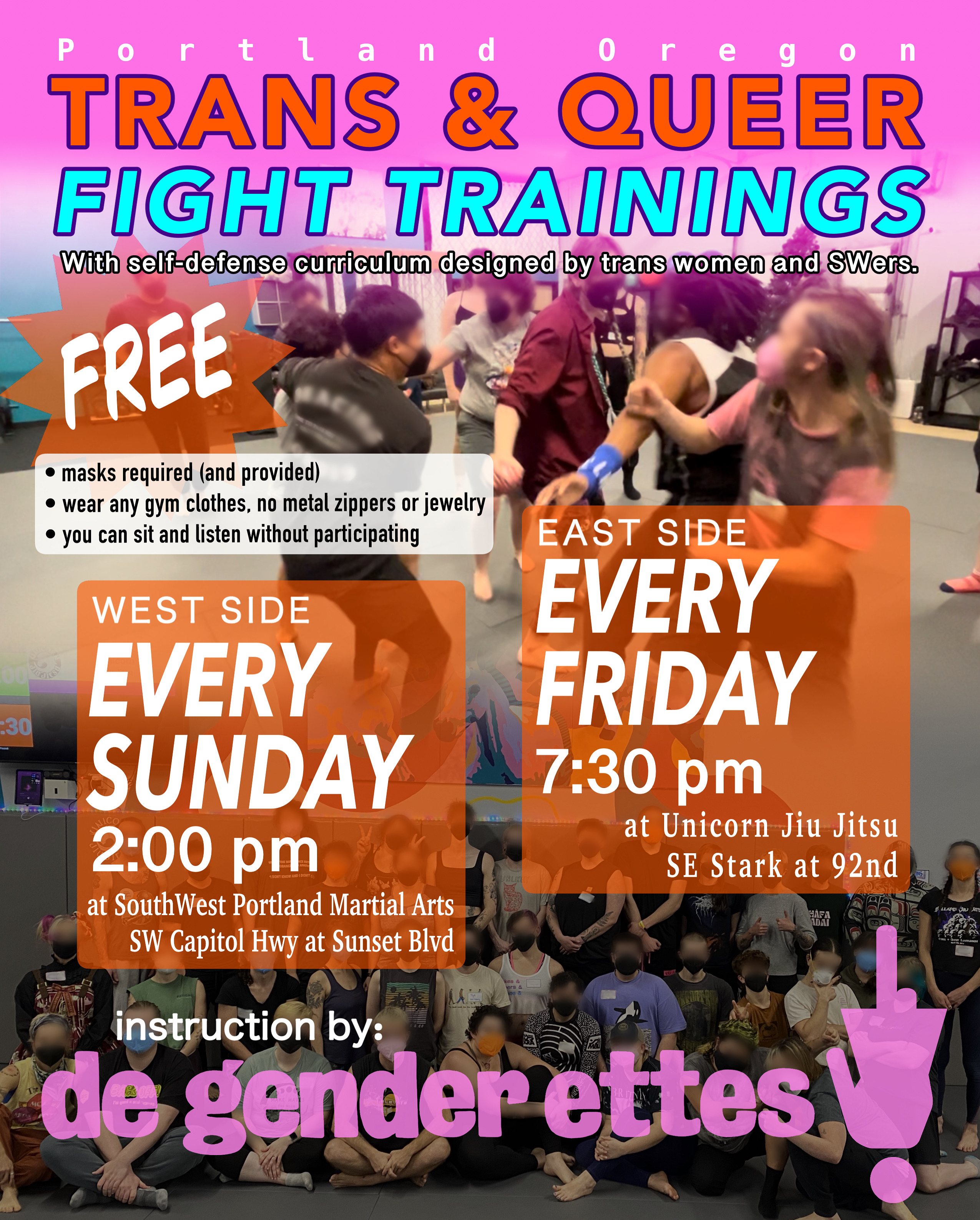 The Degenderettes Clubhouse (Portland, OR) is a training facility for trans & queer people (and direct allies).